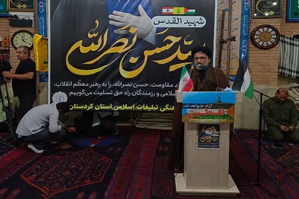 مراسم گرامیداشت شهید مقاومت سید حسن نصرالله و اجتماع امت حزبالله در محکومیت جنایات رژیم صهیونیستی باسخنرانی حجتالاسلام والمسلمین پورذهبی نماینده ولی فقیه در استان کردستان امروز، 8 مهر در مسجد جامع سنندج برگزار شد.